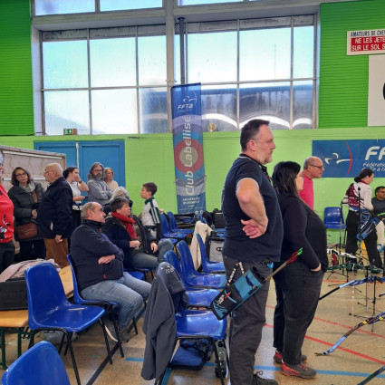 En automne et en hiver : Nos entraînements se déroulent au gymnase de La Vraie-Croix, situé rue du 19 mars 1962. Ce gymnase est équipé de huit buttes de tir, et nous pouvons pratiquer jusqu'à 40 mètres de distance.