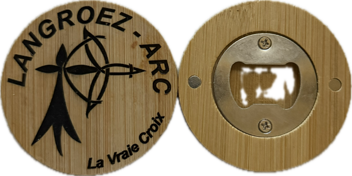 Décapsuleur Aimanté du club de tir à l'arc Langroez Arc ! Pratique, écologique et aux couleurs de notre club, il vous accompagnera lors de toutes vos moments de convivialité.