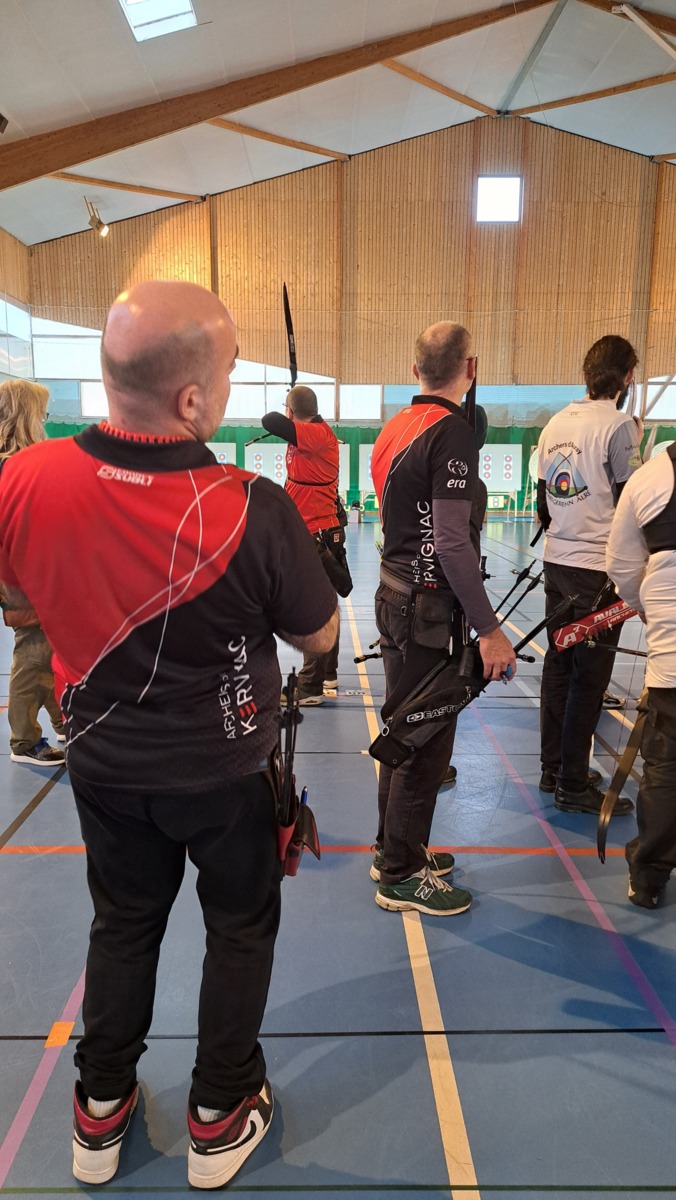 Le samedi était consacré aux équipes Classique Hommes. Le matin, place au tir de qualification. L’après-midi, les archers se sont retrouvés sur les duels, format toujours particulier à gérer. À l’issue de la journée, l’équipe de Kervignac remporte le titre départemental.