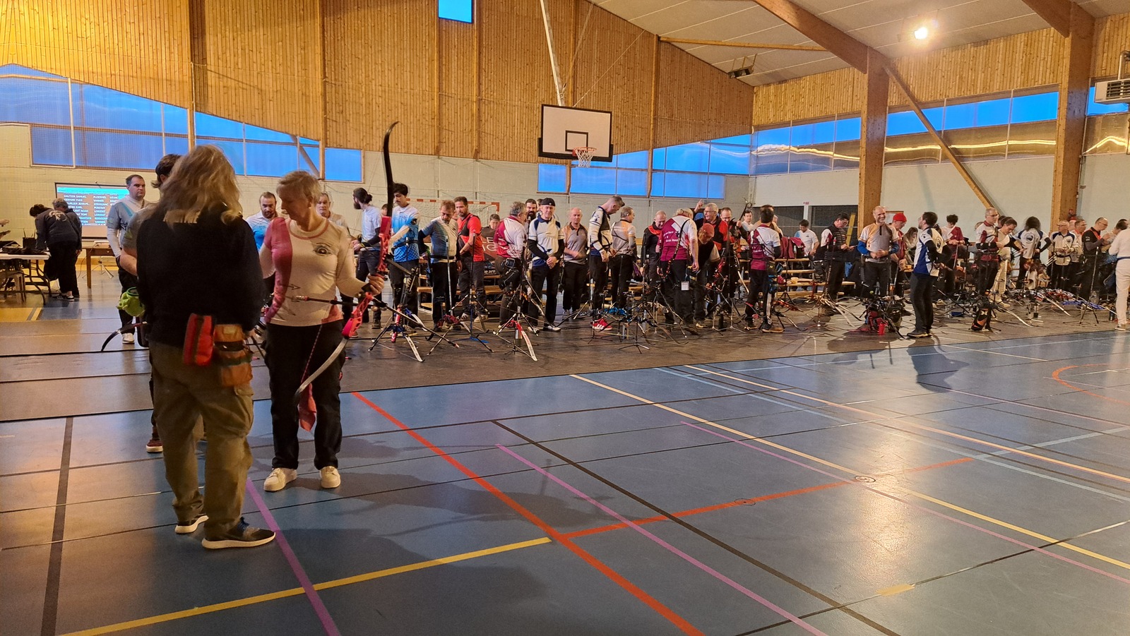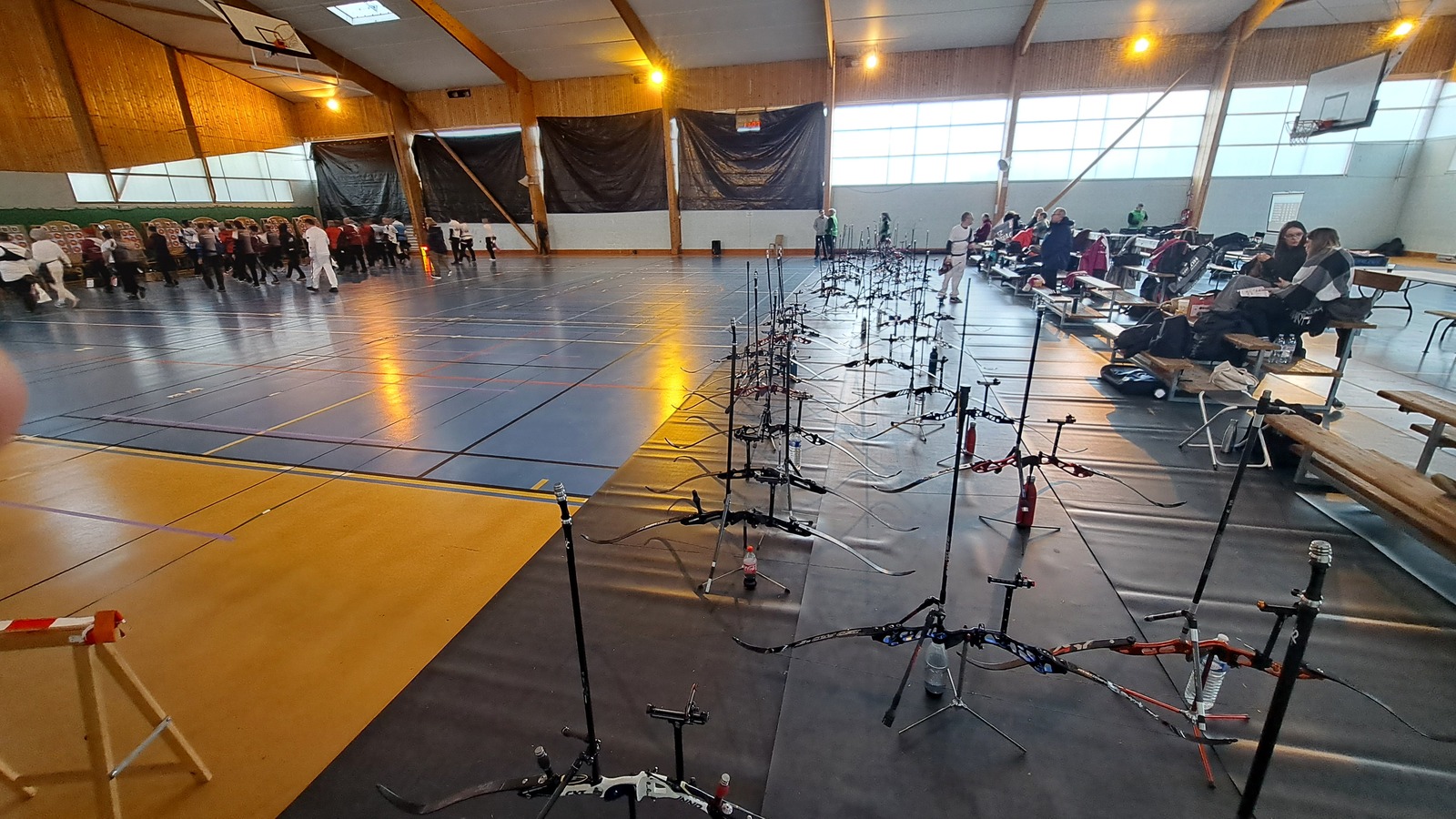 Le dimanche, changement de configuration avec trois catégories réunies sur la journée : Classique Femme, Poulies Mixte et Barebow Mixte. Les équipes se sont succédé sur le pas de tir, entre qualifications et phases finales.