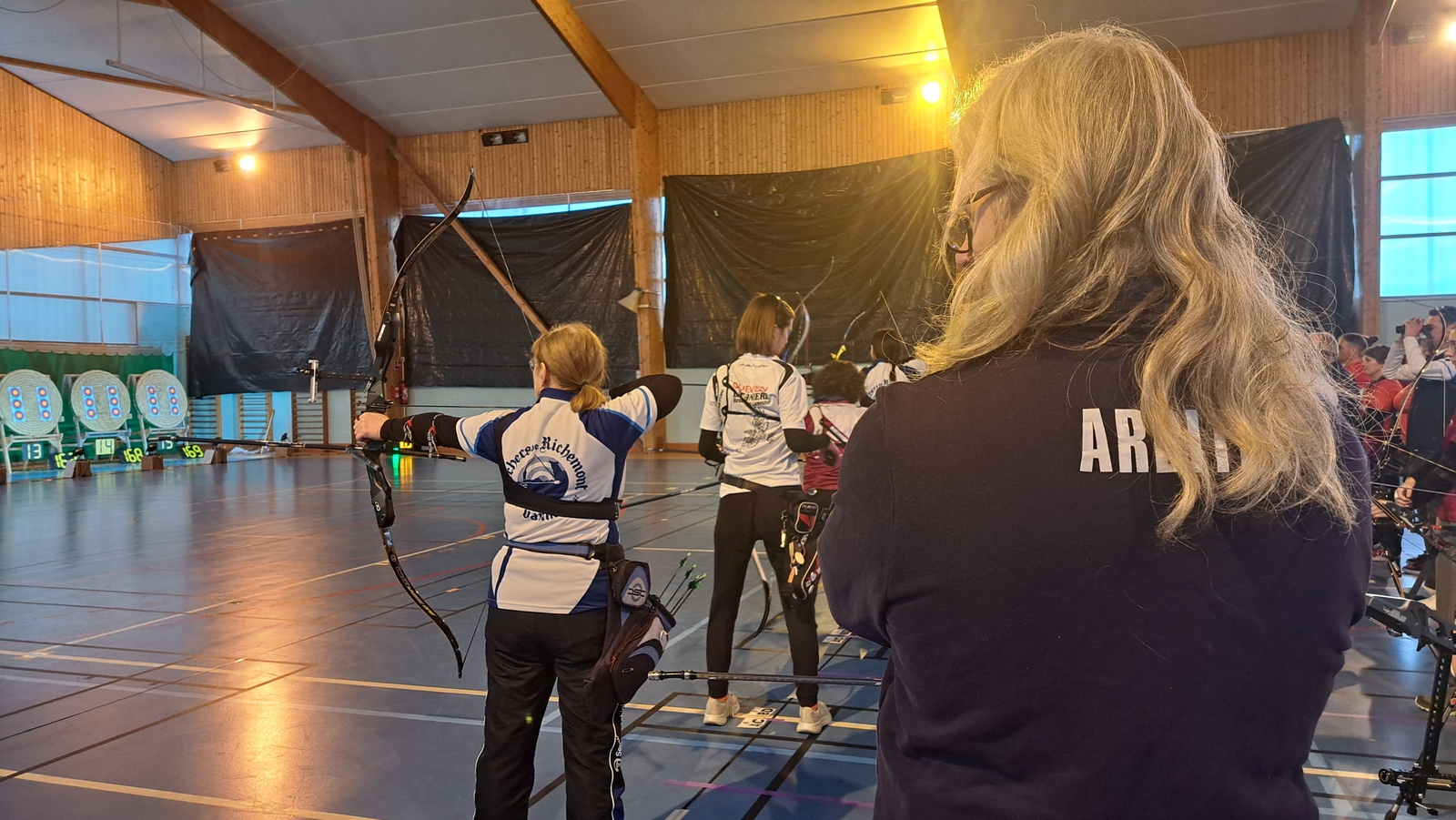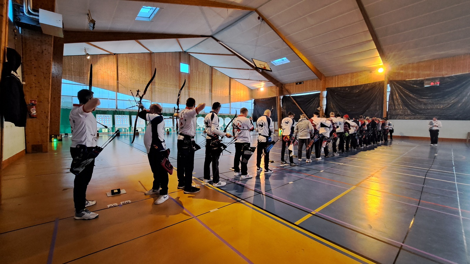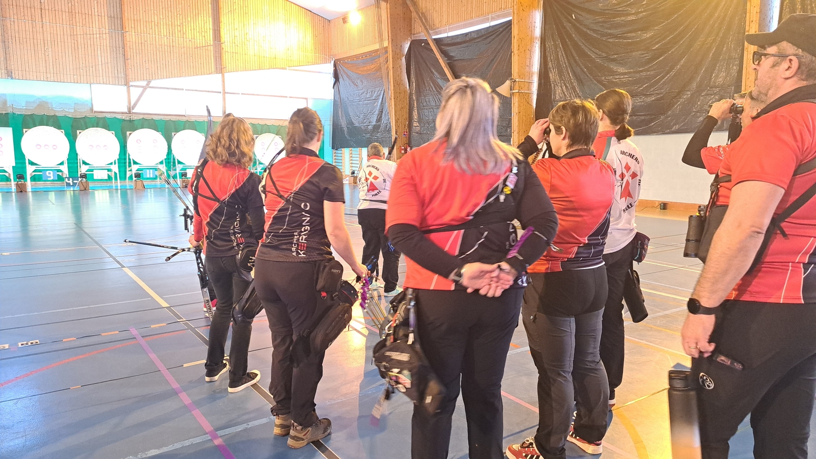 Le dimanche, changement de configuration avec trois catégories réunies sur la journée : Classique Femme, Poulies Mixte et Barebow Mixte. Les équipes se sont succédé sur le pas de tir, entre qualifications et phases finales.