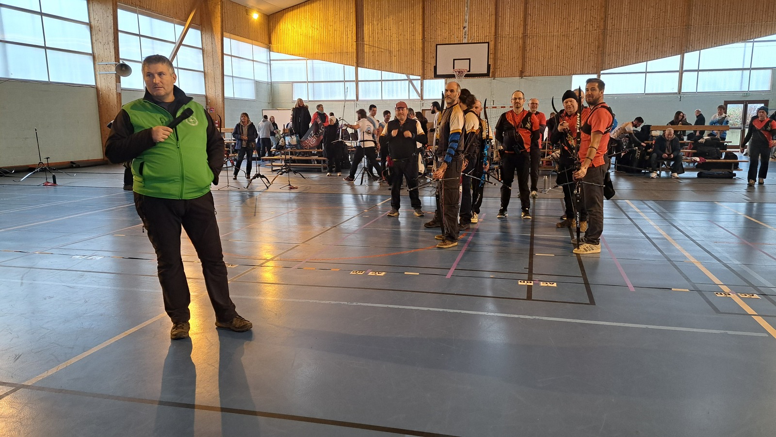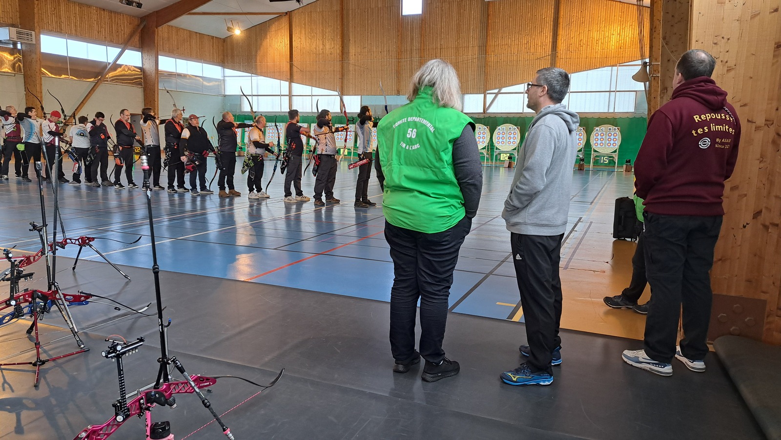 Le samedi était consacré aux équipes Classique Hommes. Le matin, place au tir de qualification. L’après-midi, les archers se sont retrouvés sur les duels, format toujours particulier à gérer. À l’issue de la journée, l’équipe de Kervignac remporte le titre départemental.